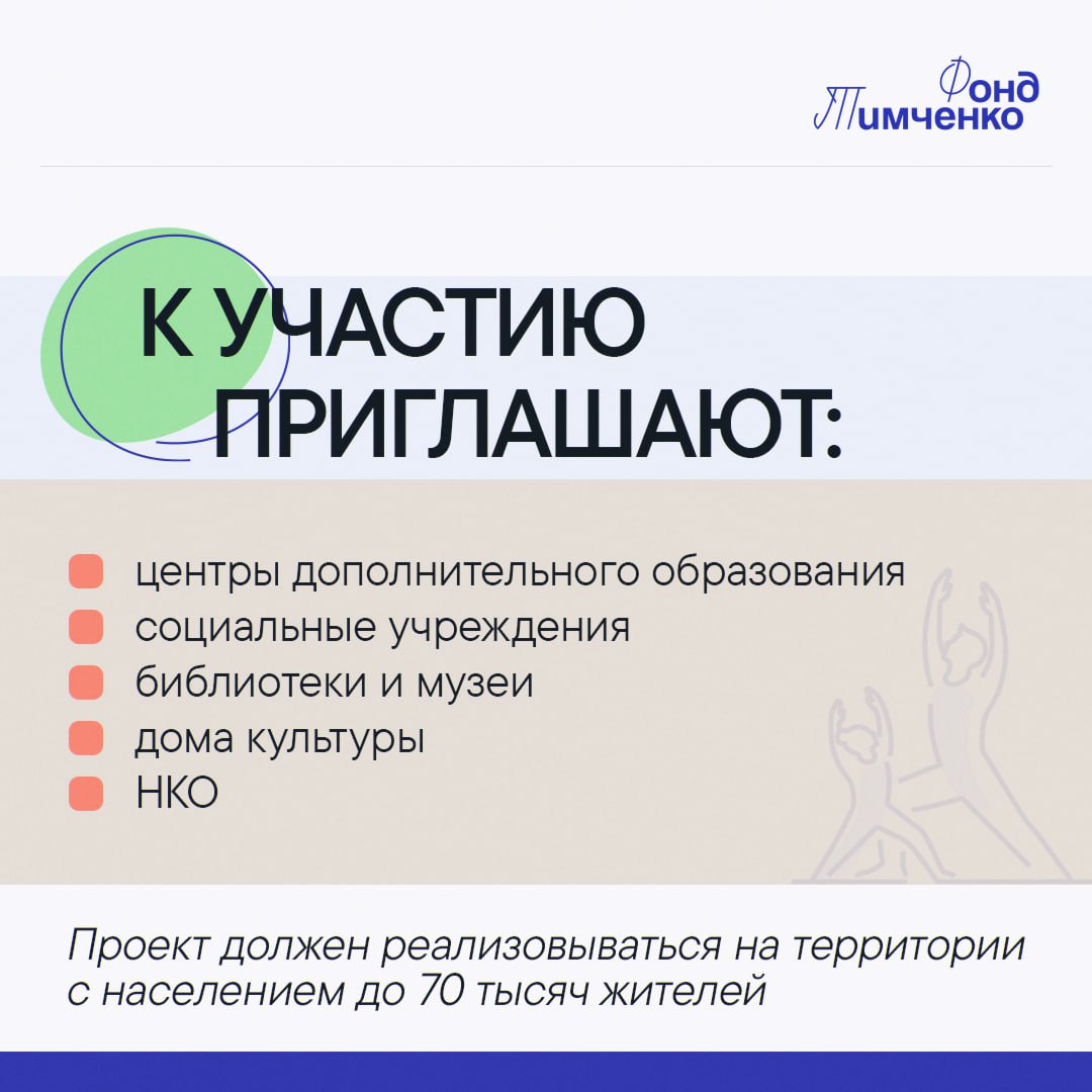 Максимальный размер финансирования проектов победителей – 1 млн рублей. Помимо финподдержки, их также ждет обучение от Фонда Тимченко, сопровождение экспертов, стажировки и участие в профильных мероприятиях.