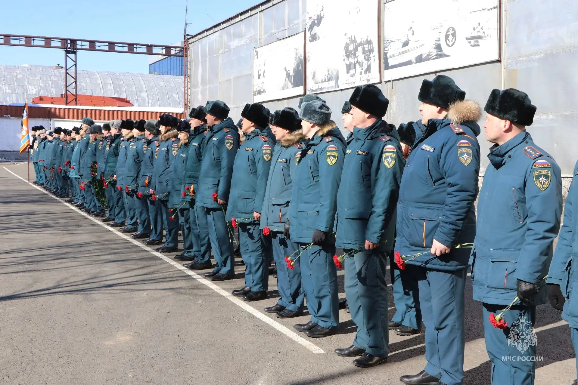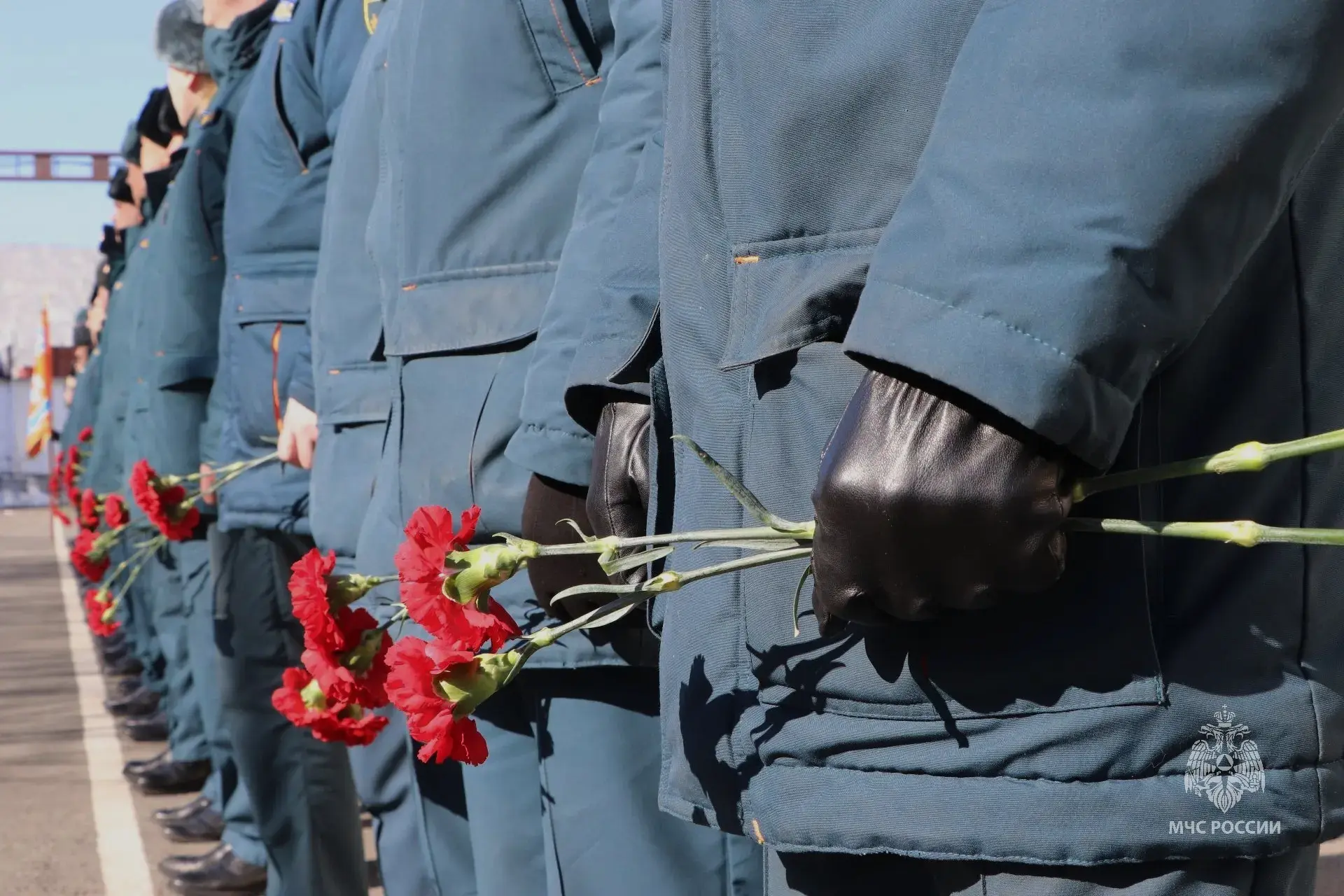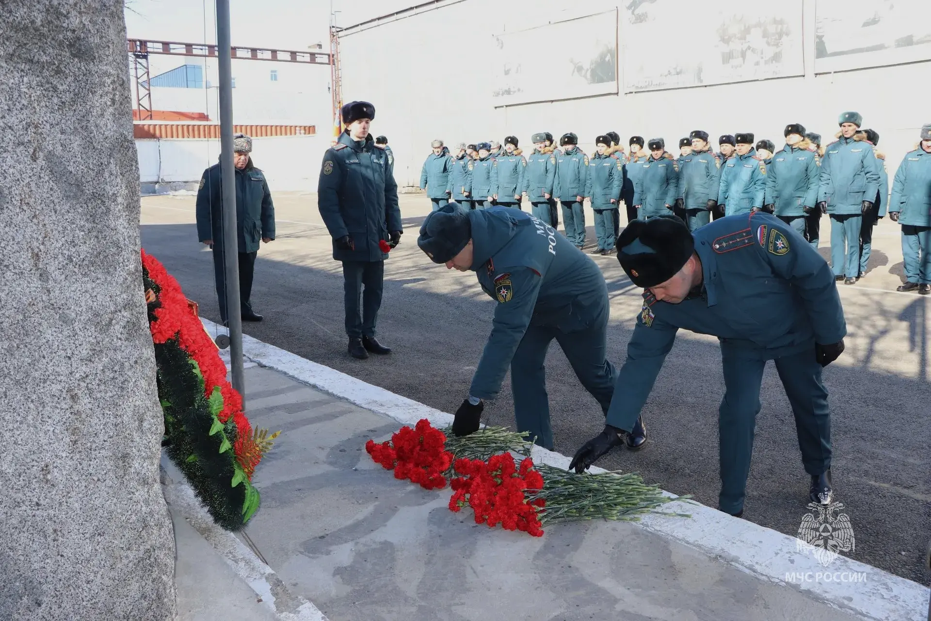 Сотрудники спасательного ведомства почтили память героев минутой молчания и возложили цветы к памятнику, посвященному тем, кто отдал свою жизнь спасая других.