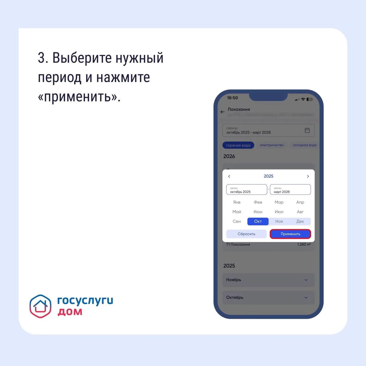 Если вам нужно найти историю показаний счётчиков, например, чтобы сравнить расход или проверить, не было ли ошибки, используйте «Госуслуги Дом».