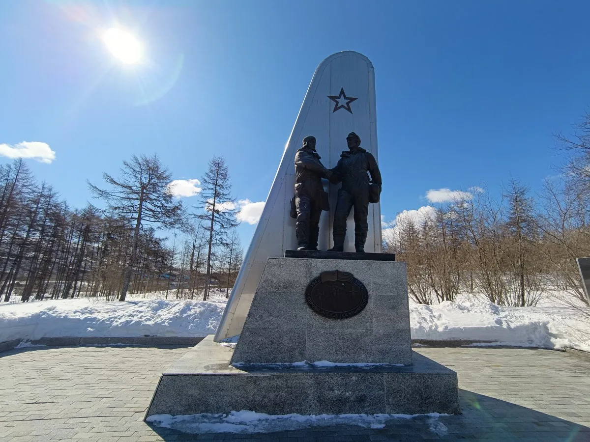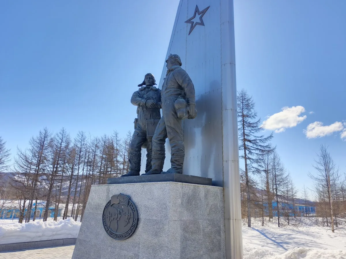 Монумент, посвященный подвигу личного состава 1-й перегоночной Краснознаменной авиадивизии ГВФ воздушной трассы «Аляска - Сибирь», открыли 9 мая 2020 года на 13 километре трассы «Колыма» - при въезде в старый аэропорт. Место символично, ведь в годы Великой Отечественной войны эта воздушная гавань была запасной для летчиков АлСиба, которые принимали и переправляли военные самолеты из США на фронт с Германией.