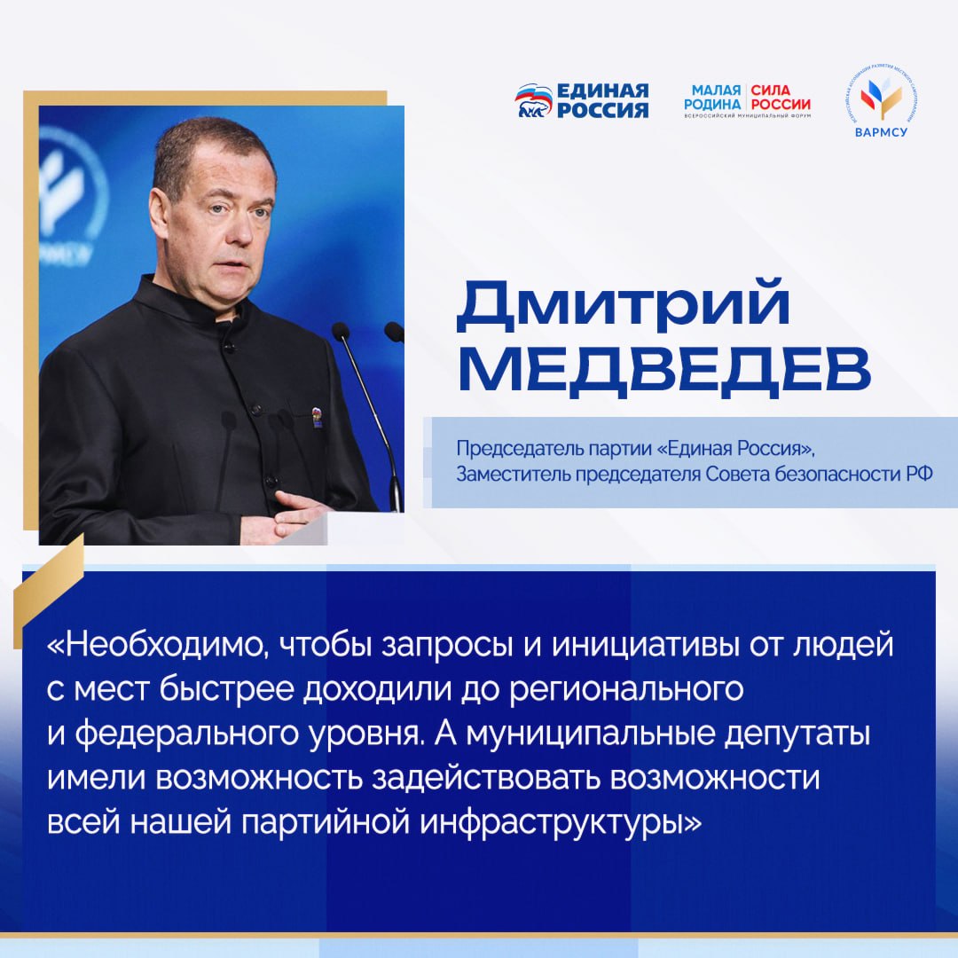 Дмитрий Медведев, выступая на III Всероссийском муниципальном форуме «Малая Родина – Сила России», отметил: прошедший год в партии «Единая Россия» был объявлен Годом муниципального депутата. Одна из его целей – усиление внутрипартийной коммуникации.