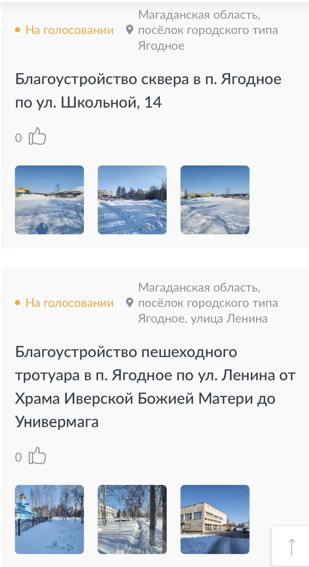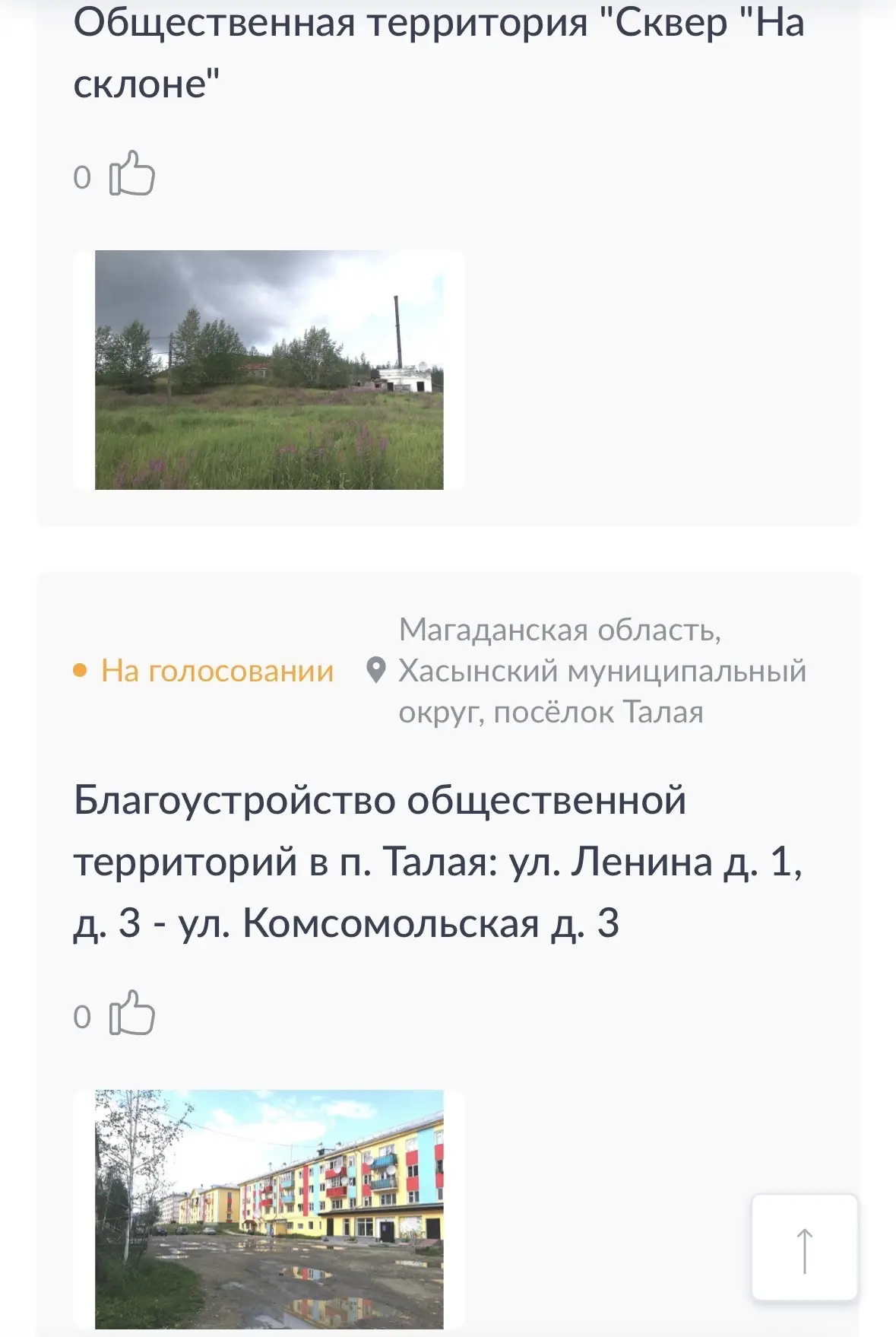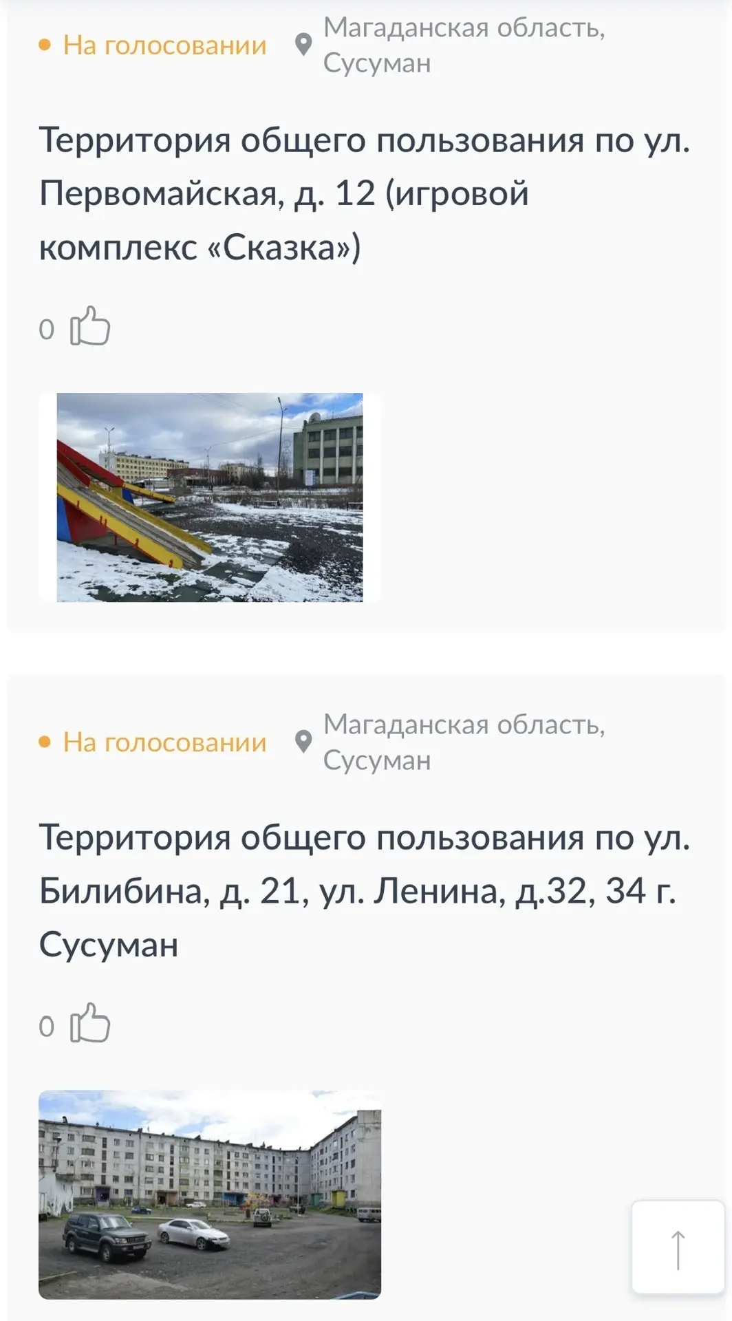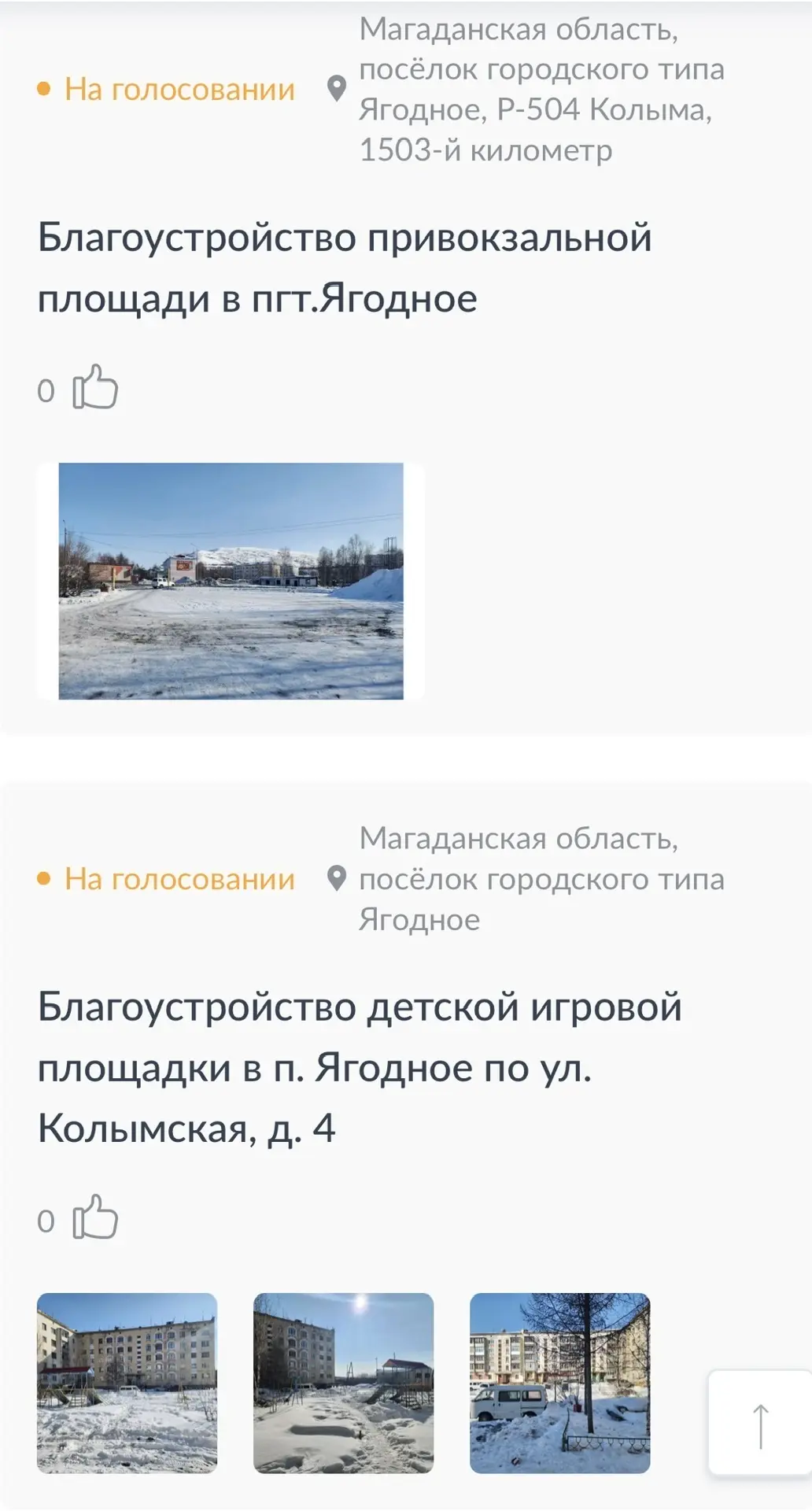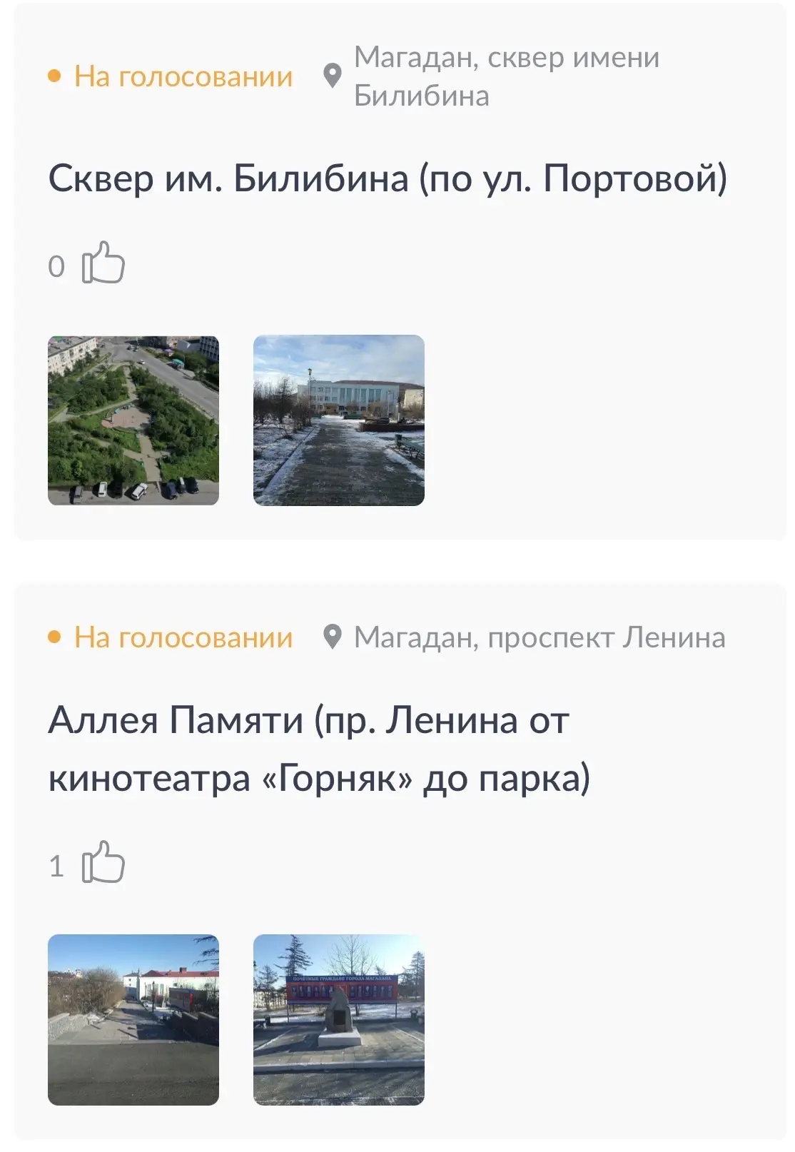 В этом году от Магаданской области заявлены объекты 8 муниципальных образований: по 7 из них голосуют за выбор территории благоустройства - город Магадан, Хасынский, Ягоднинский, Тенькинский, Сусуманский, Среднеканский, Северо-Эвенский муниципальный округ.