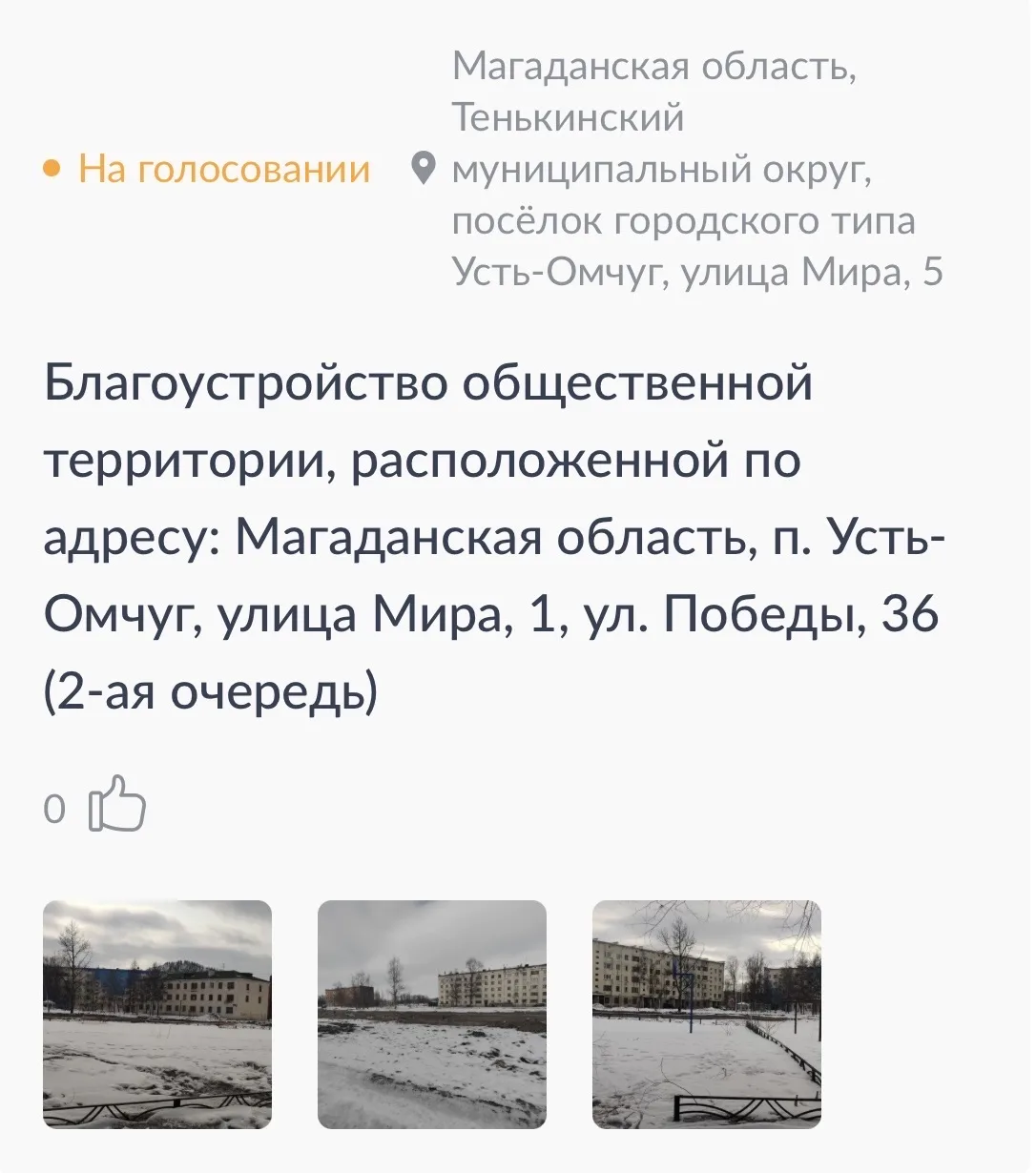 Отметим, в этом году голосуем за дизайн-проект благоустройства территории - площадь перед Центром досуга и народного творчества поселка Омсукчан, выбранного в прошлом году.