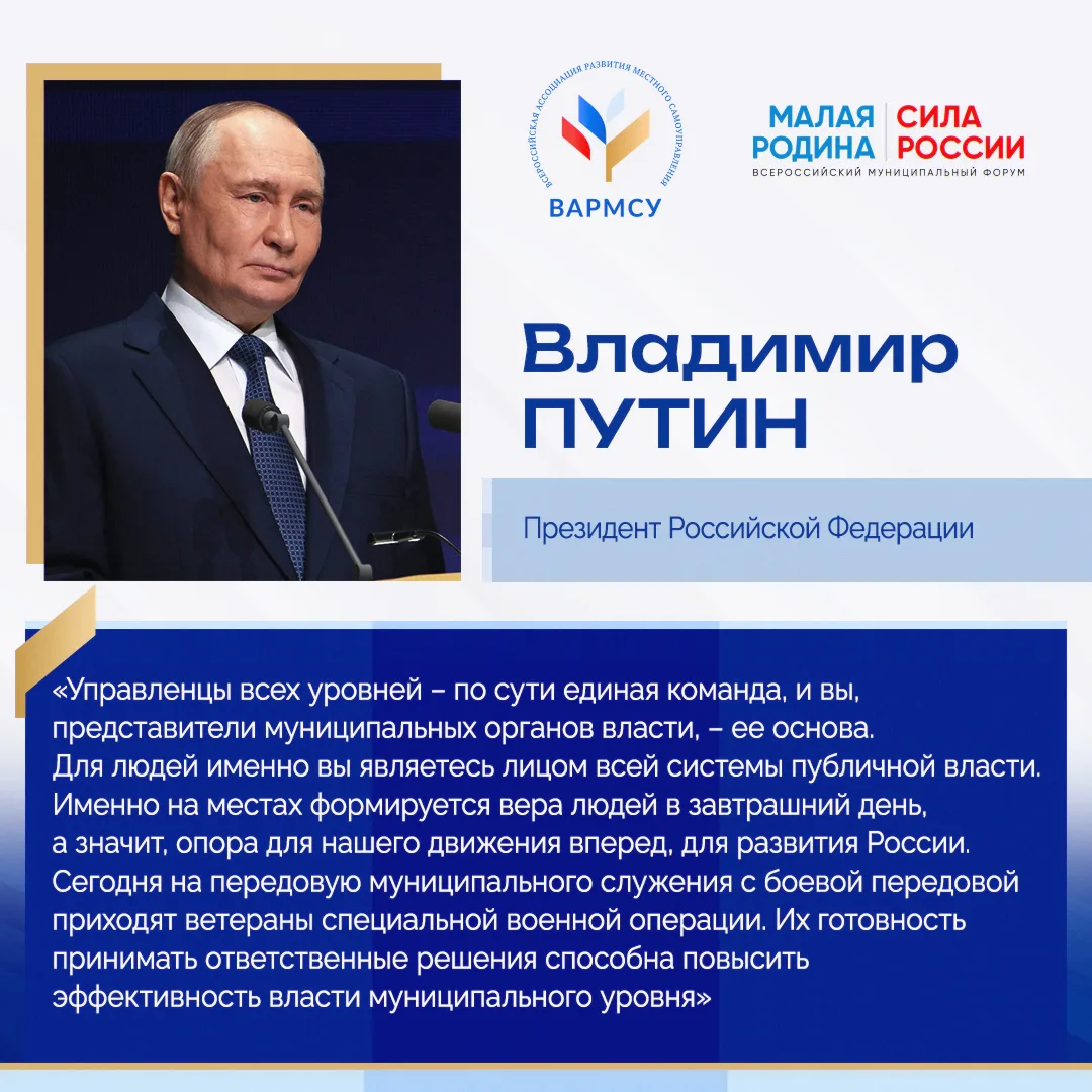 Премия «Служение» проходит в рамках III Всероссийского муниципального форума «МАЛАЯ РОДИНА – СИЛА РОССИИ». Ее организатор – ВАРМСУ при поддержке Администрации Президента России.
