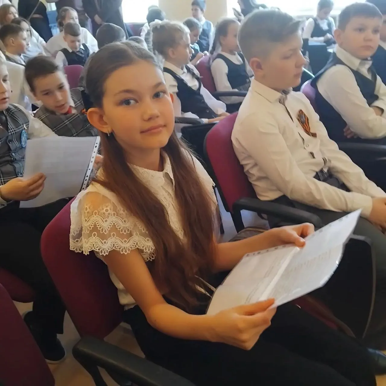 После Киры Шиян свои материалы представили одноклассники Полина Иванова, Артем Омельченко, Артем Приходченко и другие учащиеся. В течение дня на площадке прозвучало 136 рассказов о фронтовиках.