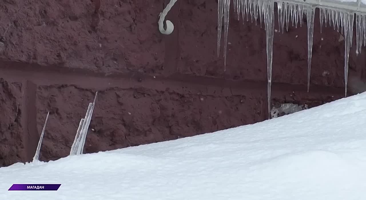 МЧС предупреждает колымчан об опасности схода снега и льда с крыш зданий