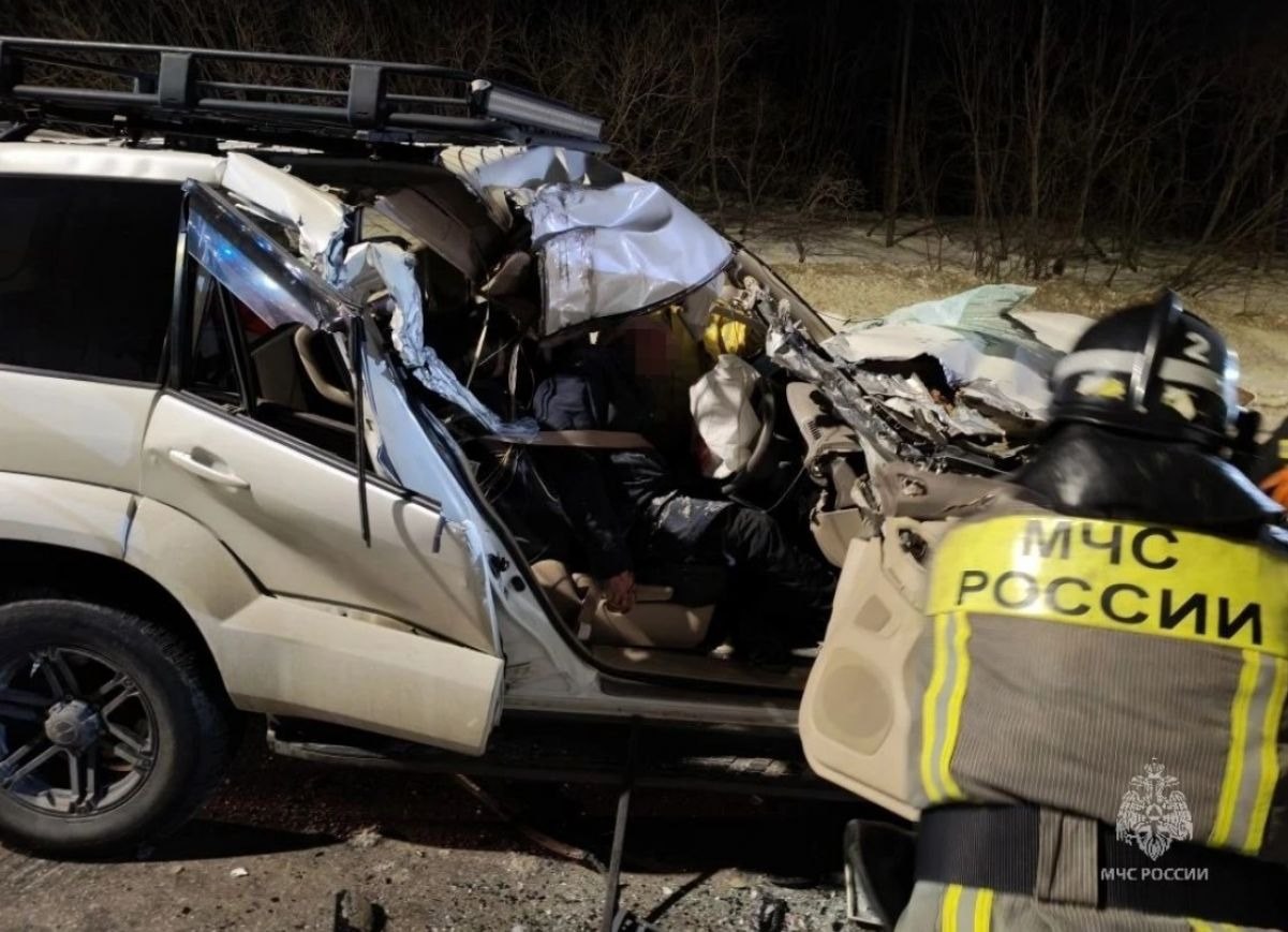 Внедорожник влетел в грузовик в Магадане