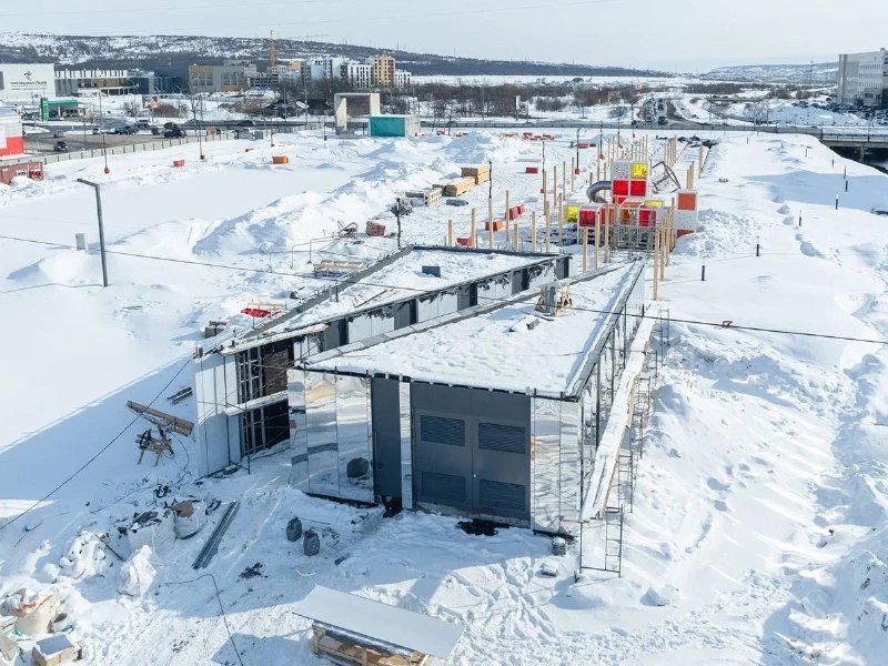 В павильонах «Портал» и «Палуба» устанавливают деревянные конструкции. В административнобытовом блоке облицовывают фасады, монтируют подвесные потолки и устанавливают сантехническое оборудование. Общая готовность объекта — более 70 %.