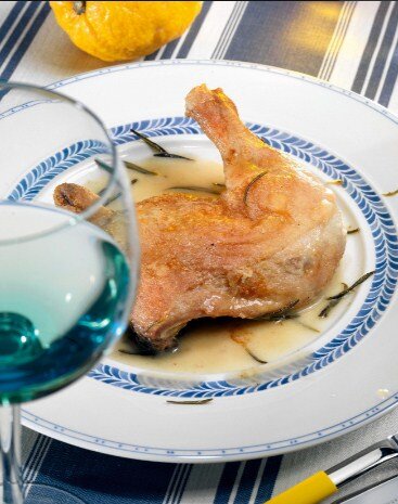 После приготовления вынуть куриные окорочка и добавить в сковороду лимонный сок. Перемешать и подать на стол с ароматным соусом, оставшимся на дне сковороды. Это блюдо станет настоящим украшением вашего стола и понравится всем вашим гостям!