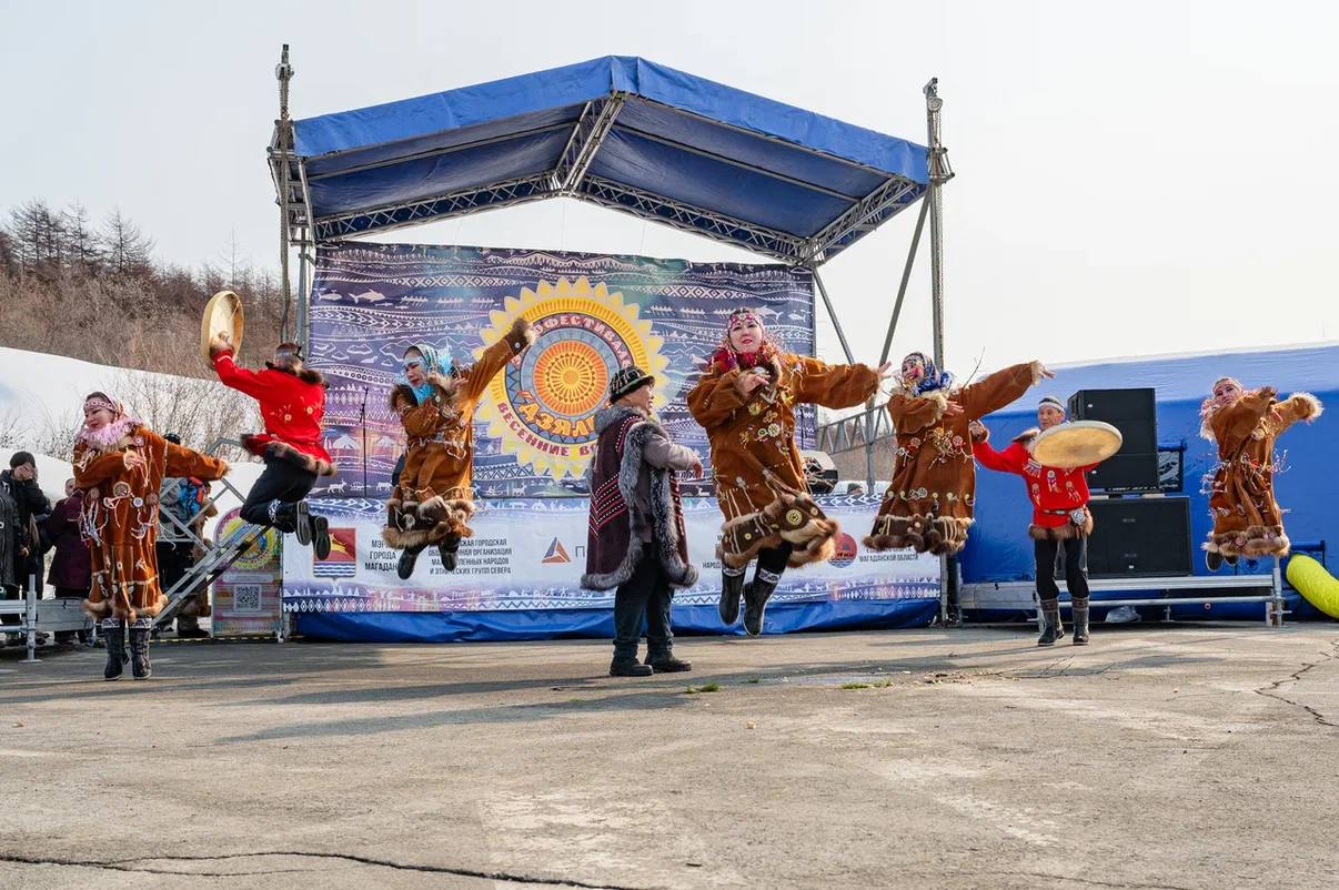 На одной площадке собрались делегации из Магадана, Ольского, Омсукчанского, Среднеканского и СевероЭвенского округов, которые представили свои творческие коллективы и спортивные команды Северного многоборья.