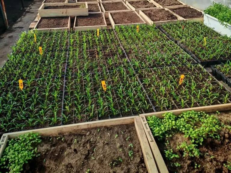 На текущий момент растениеводы уже распикировали 15 000 сеянцев цинерарии, маргаритки и виолы, а также рассадили 1 100 укоренённых черенков петунии и гвоздики.