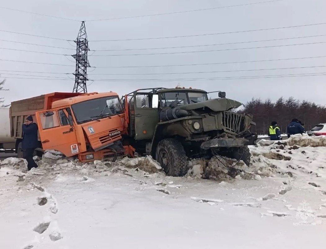 Два грузовика столкнулись в Магадане
