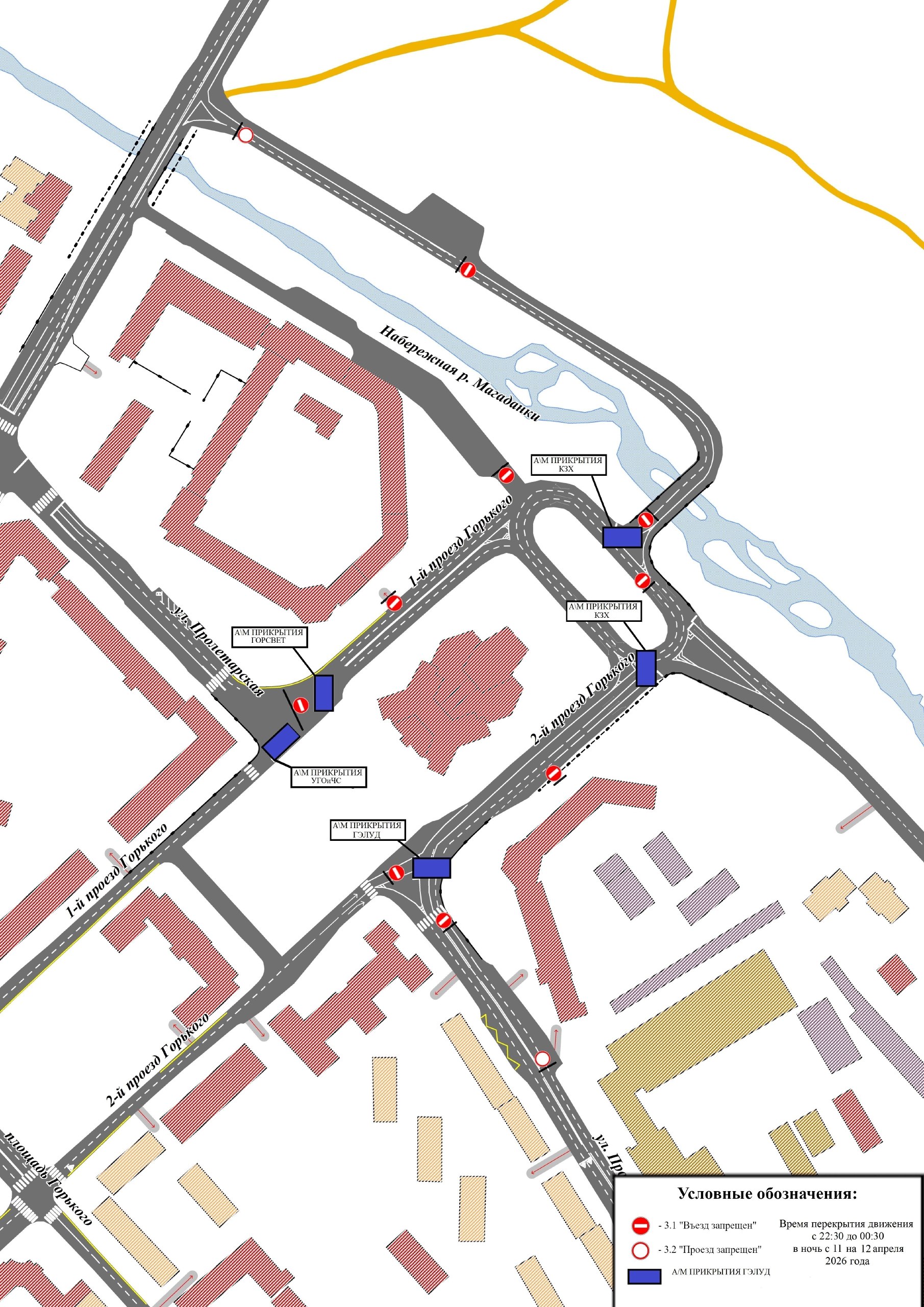 В связи с этим будет прекращено движение транспортных средств на улицах Пролетарской, Набережной реки Магаданки, в 1-м и 2-м проездах Горького. Период ограничения – с 22:30 11 апреля до 00:30 12 апреля. Водителей просят соблюдать требования временных дорожных знаков в течение указанного времени.