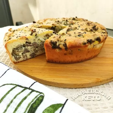 Форма для выпечки смазывается маслом и заполняется сначала половиной теста. На него выкладывается начинка из печени, а поверх нее распределяется оставшееся тесто. Чтобы придать блюду особый вкус, присыпьте пирог кунжутом и отправьте в духовку, разогретую до 180 градусов, до появления золотистой корочки. Пирог готовит!