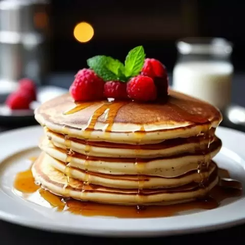 Подавайте готовые панкейки с кленовым сиропом, свежими ягодами или взбитыми сливками. Приятного аппетита!