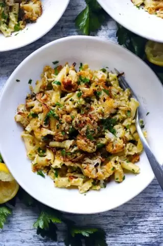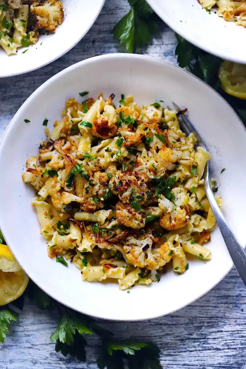 Погрузитесь в мир изысканных вкусов с новым рецептом пасты с жареной цветной капустой. Это невероятно сытное блюдо заставит вас влюбиться в каждый укус. Обжаренная до золотистой корочки цветная капуста, сочетающаяся с хрустящими луковыми кусочками и аппетитными панировочными сухарями, создает идеальное гармоничное сочетание текстур и вкусов. В дополнение к этому, лимонный сок и каперсы придают блюду освежающую нотку, в то время как свежая петрушка завершает картину, добавляя яркие акценты.