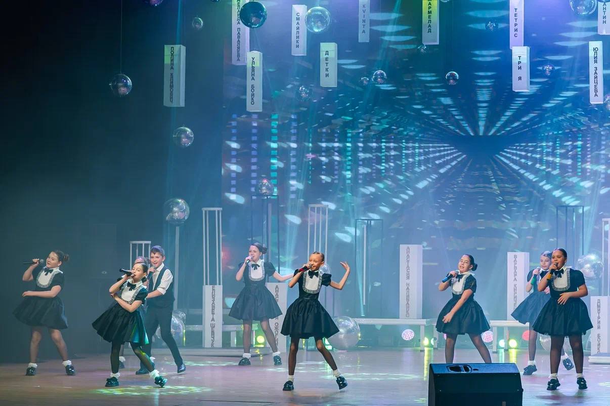Юбилей отметили ярким концертом «Отражение». Прозвучали любимые хиты в исполнении вокальных групп «Детки», «Тетрис», «Серпантин», «Мармелад», «Смайлики» — и зал не уставал аплодировать!