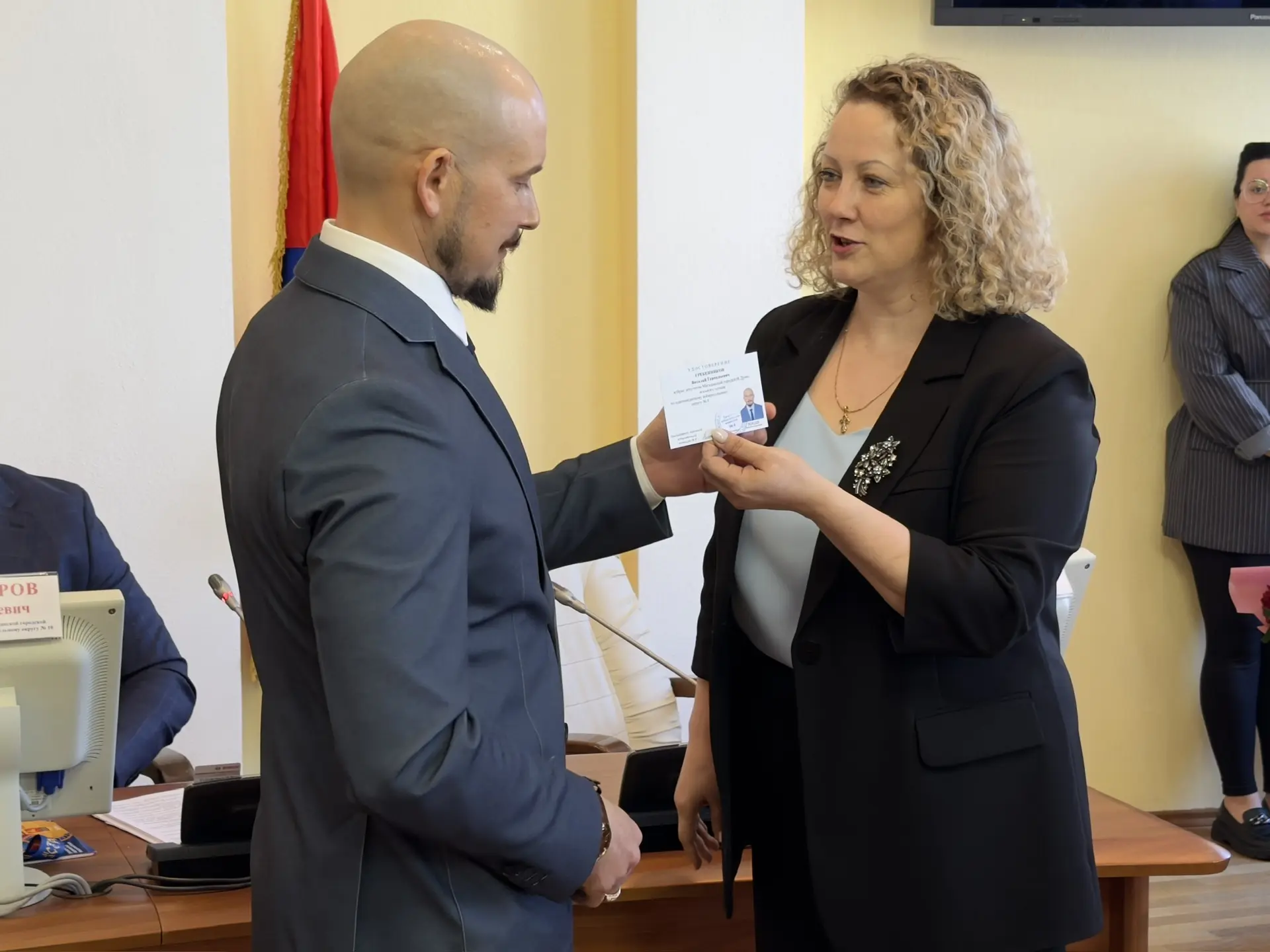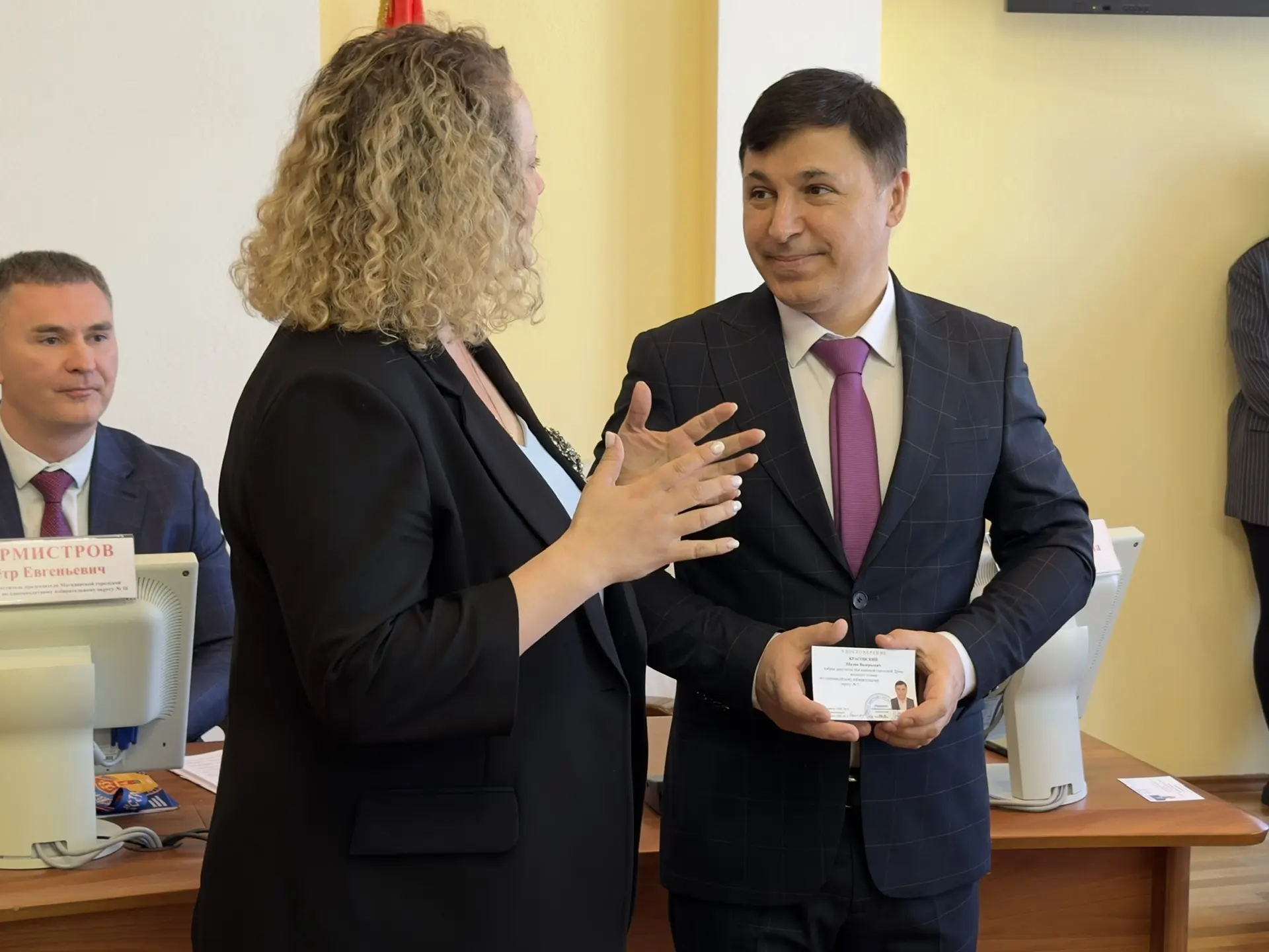 Избранным депутатам были вручены удостоверения и депутатские значки.