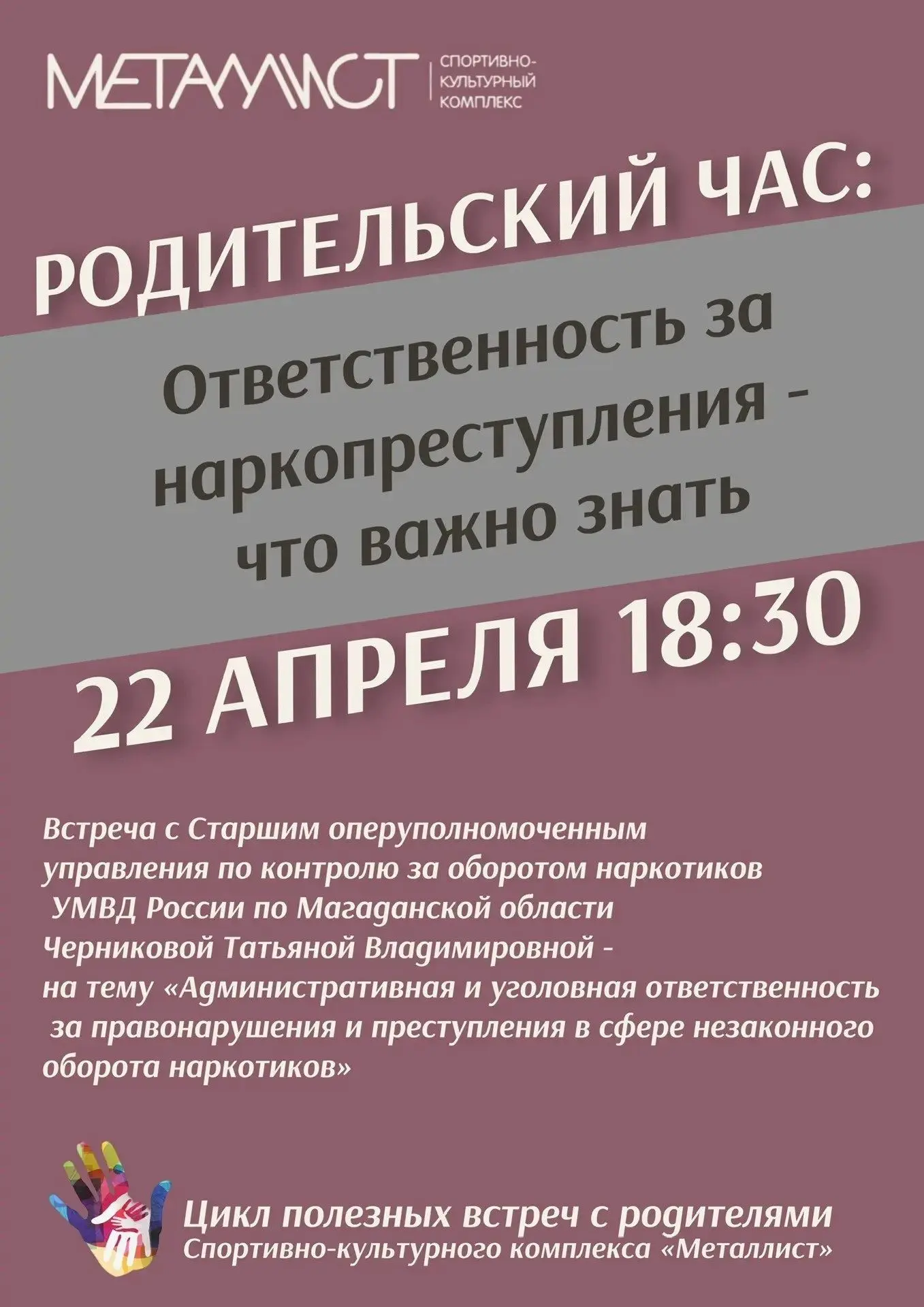 Спортивный комплекс «Металлист» запускает цикл встреч родителей с экспертами по актуальным вопросам безопасности и воспитания детей
