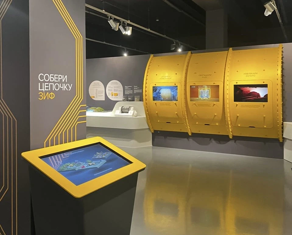 Экспозиция рассказывает о развитии нашей промышленной золотодобычи — от открытия до современных технологий, используемых на месторождении «Наталка».