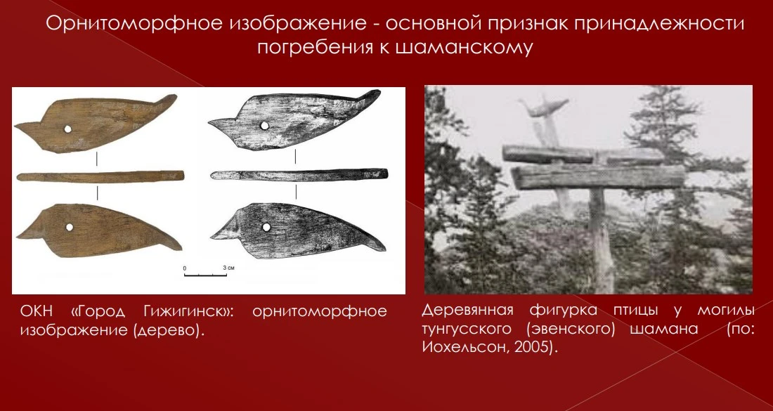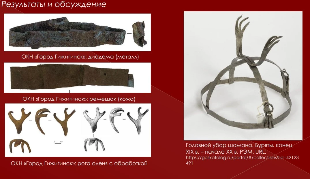 Последующие исследования прояснили картину. Останки были переданы на генетический анализ в ряд федеральных НИИ, кроме того, выполнили этнографический и этнологический анализ найденных предметов. В результате предположения относительно шаманского захоронения подтвердились – оно действительно оказалось таковым. К примеру, диадема являлась головным убором эвенских шаманов. Это был узкий металлический обруч, к которому крепились рога оленя – их фрагменты тоже лежали в погребении.