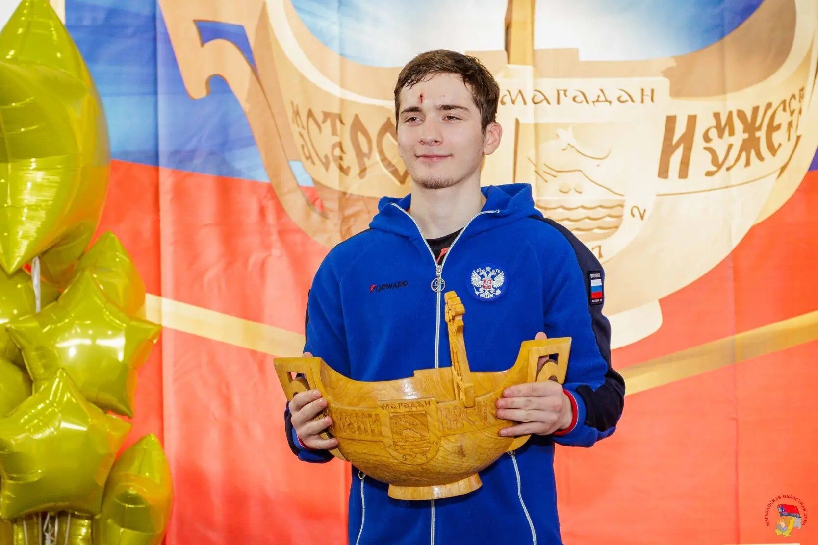 Резную деревянную ладью лучшему боксёру юбилейного турнира вручил Олимпийский чемпион Александр Лебзяк.